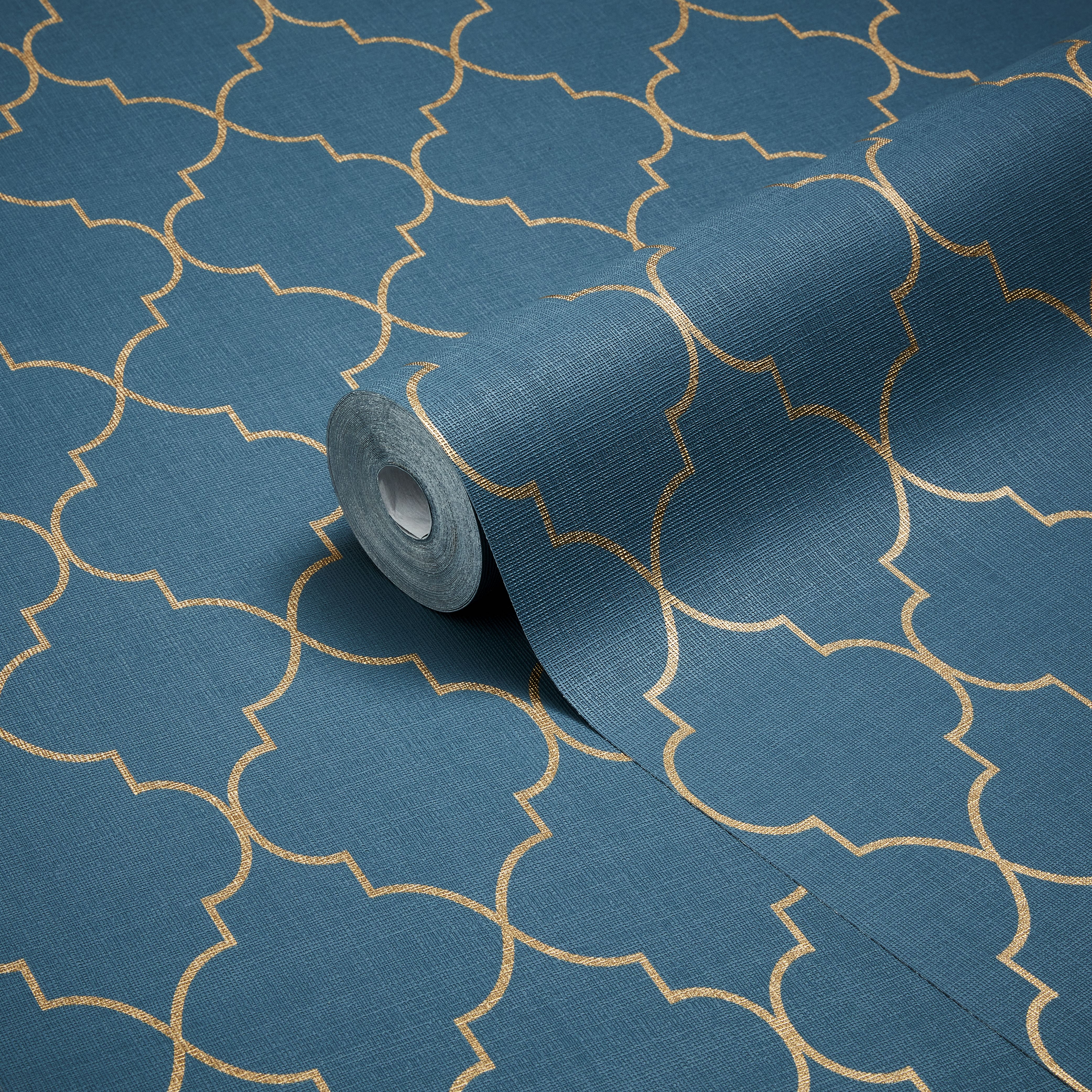Grandeco Deco Trellis Navy Geometric Metallic Effect Embossed