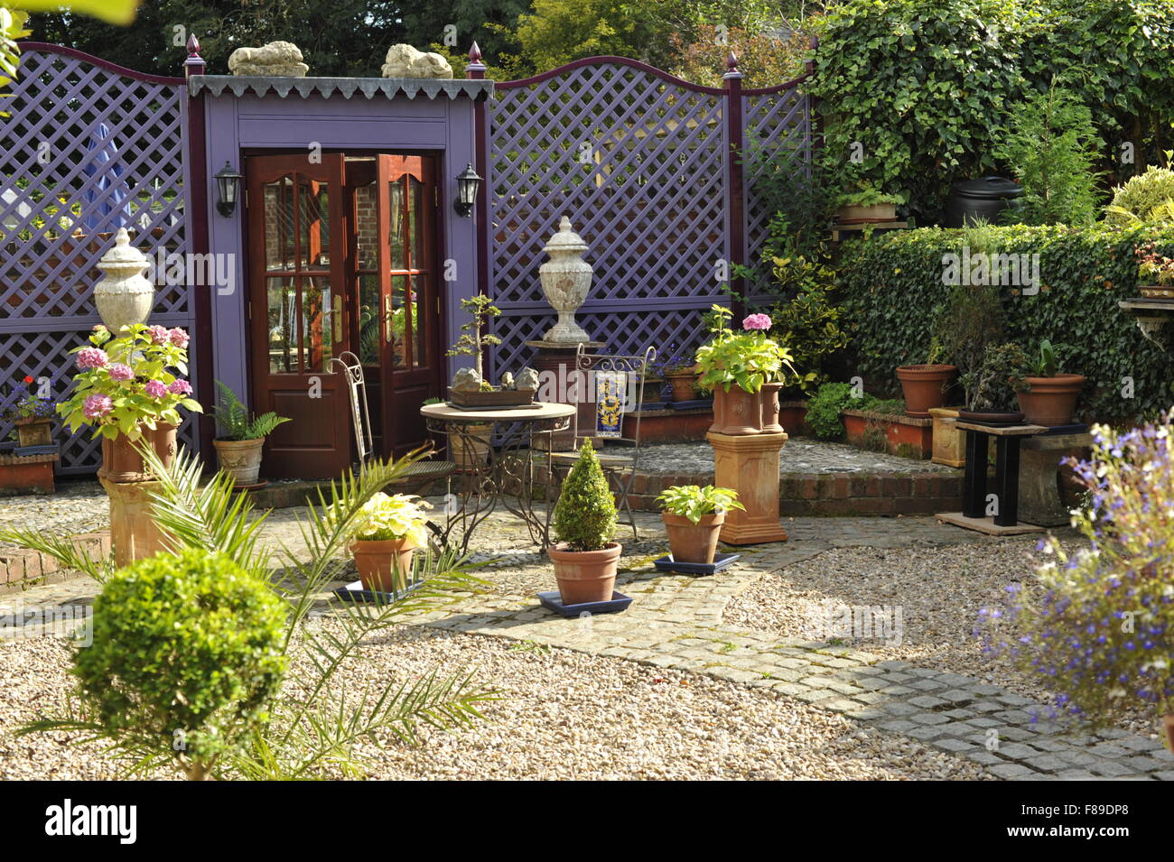 Trellis And Fake Doorway With Mirror In Garden Stock Photo