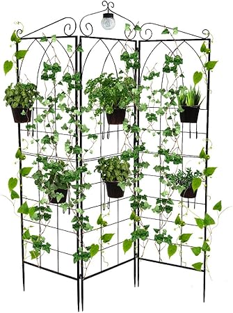 Folding garden trellis. Use this folding garden trellis as a flat backdrop against a wall or angle its two panels around a corner to maximize space in your raised bed. More buying choices 6399 2 new offers. Beffee garden trellis for climbing plants three panel folding trellis with led solar light outdoor side table plant stand metal flowers patio metal wire lattices grid panels for ivy roses.