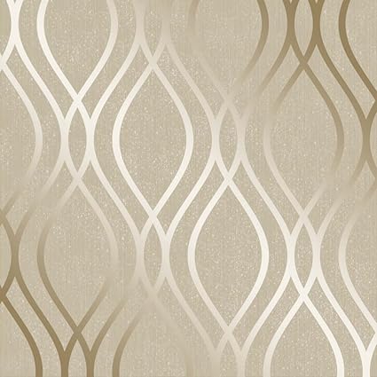 Camden Wave Wallpaper Cream Gold H980530 Amazon Co Uk Diy