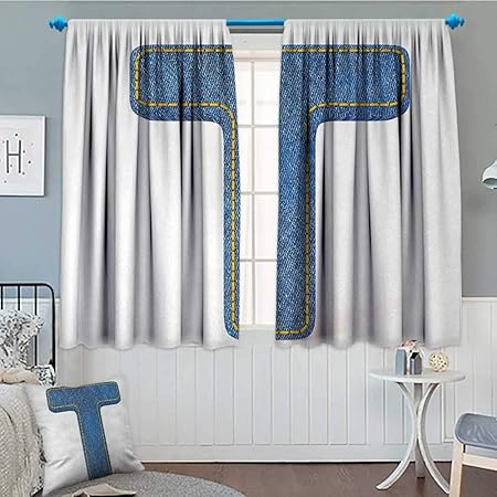 Anniutwo Letter T Window Curtain Drape Alphabet Design Denim