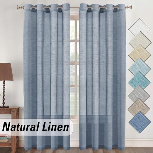 Amazon Com Flamingo P Denim Linen Sheer Curtains Panels Drapes