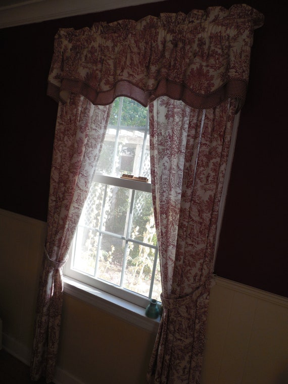 Vintage French Country Toile Curtain Set Complete With Curtain Etsy
