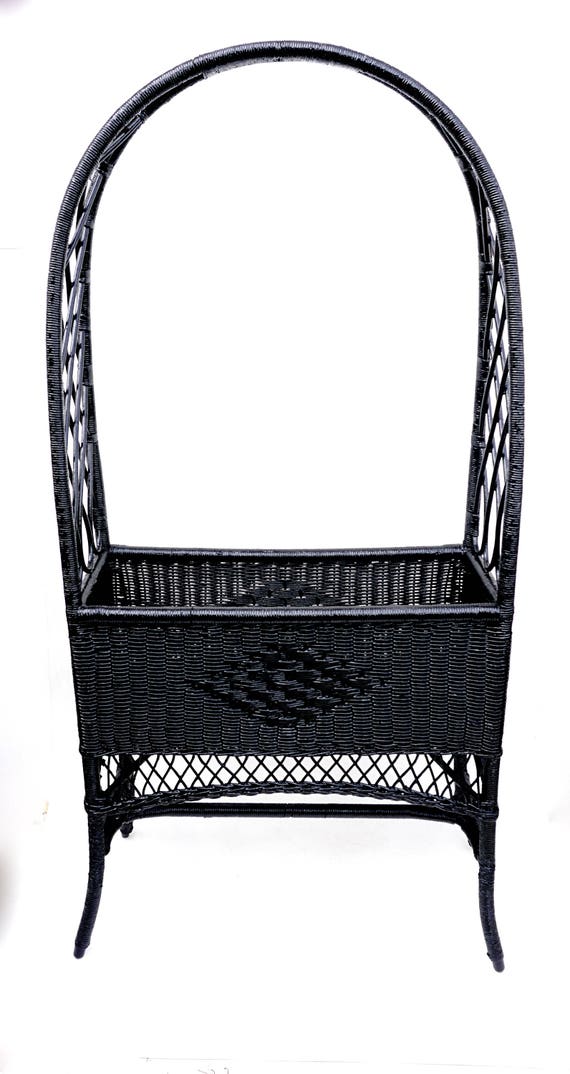Vintage Black Woven Wicker Rattan Plant Stand Stately Etsy