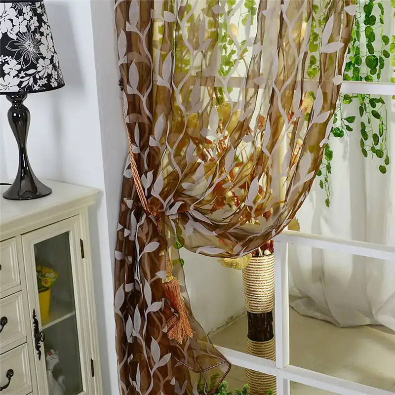 Gobestart Leaves Sheer Curtain Tulle Window Treatment Voile Drape