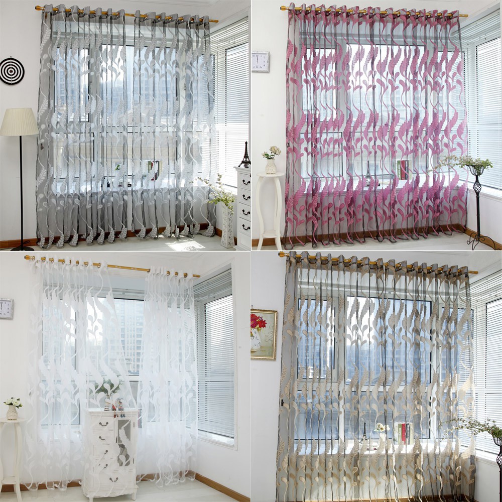 Leaf Sheer Curtain Tulle Window Treatment Voile Drape Valance