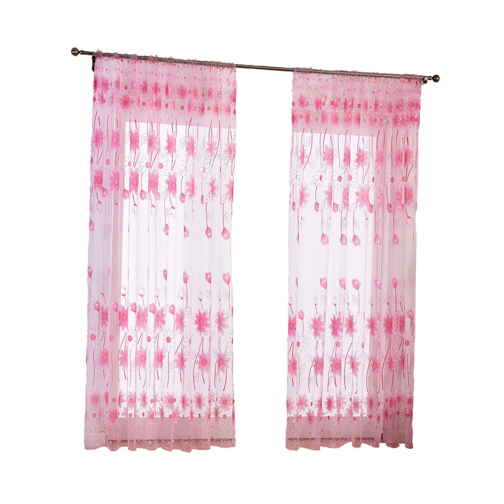 Flower Sheer Curtain Tulle Window Treatment Voile Drape Valance 1