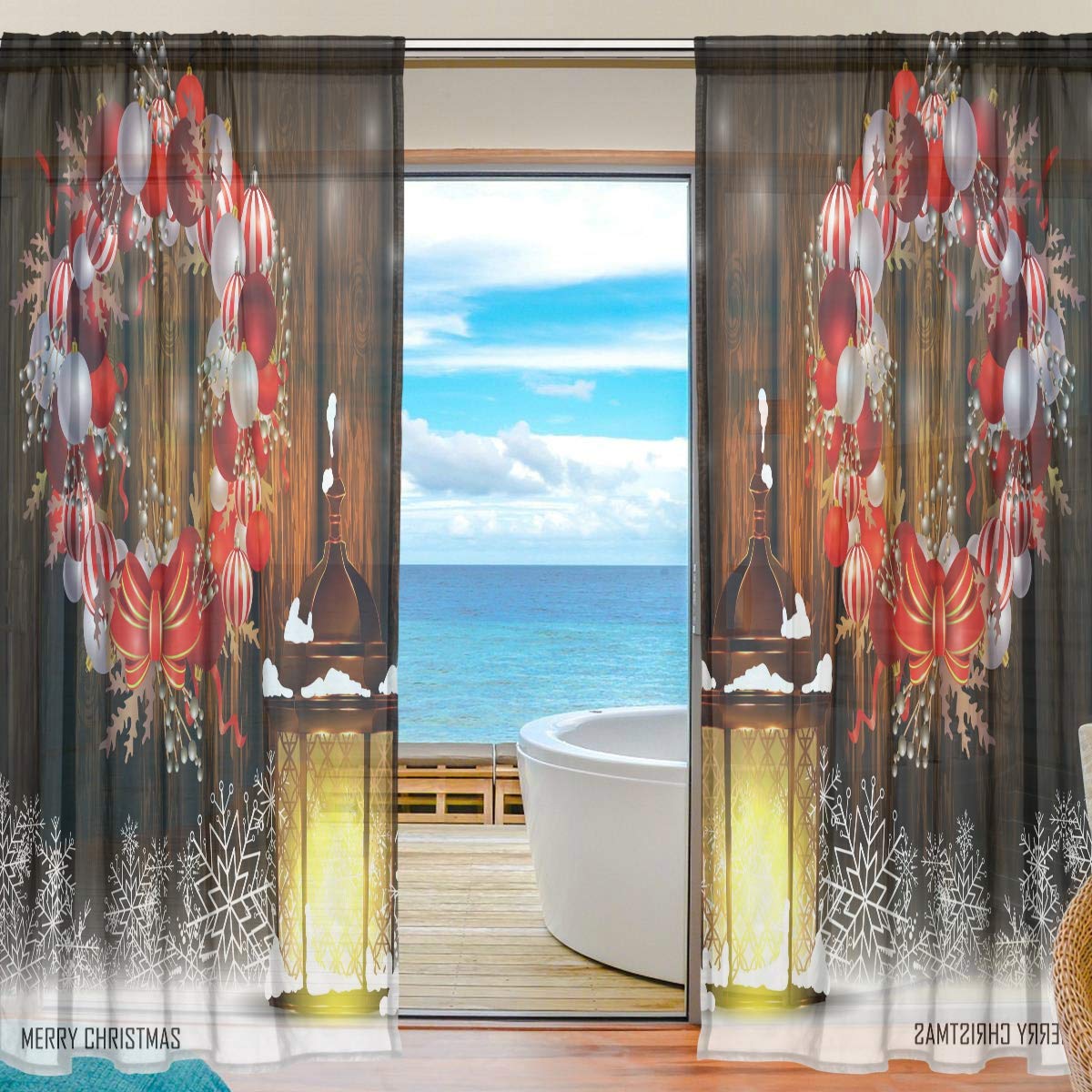 Emoya Sheer Curtain Christmas Wreath Light Trees Window Treatment