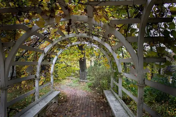 Grape Arbor Brick Path Garden Country Garden Arch Trellis Hallway