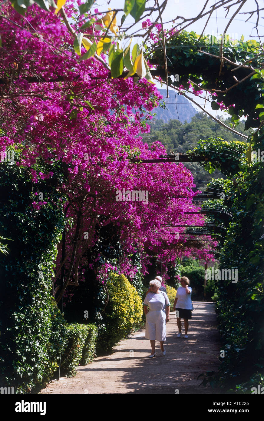 Sightseers Walking Along A Path Shaded By Trellises Of Jasmine And