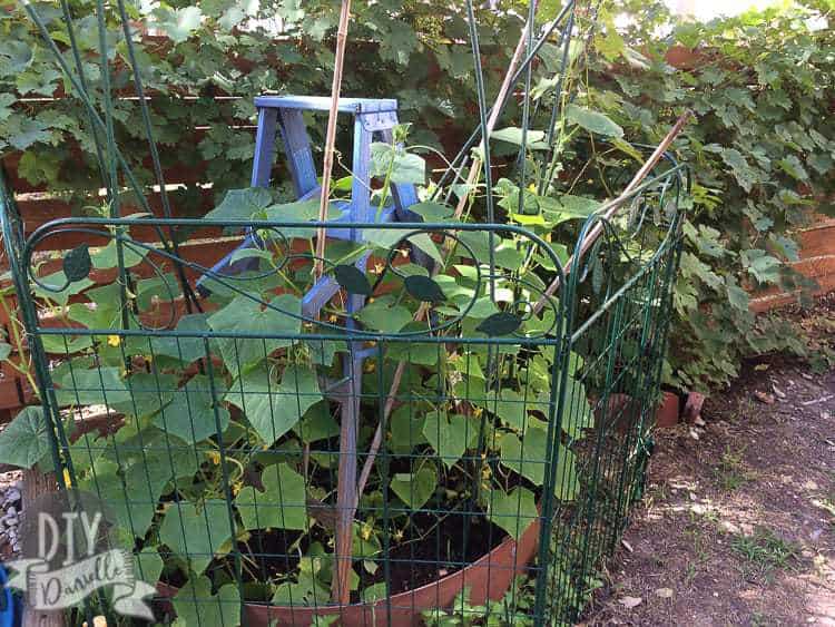 Cucumber Trellis From A Wood Ladder Diy Danielle