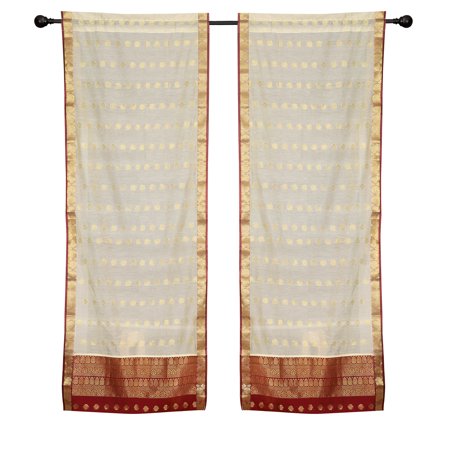 2 Cream Bohemian Indian Sari Curtains Rod Pocket Living Room