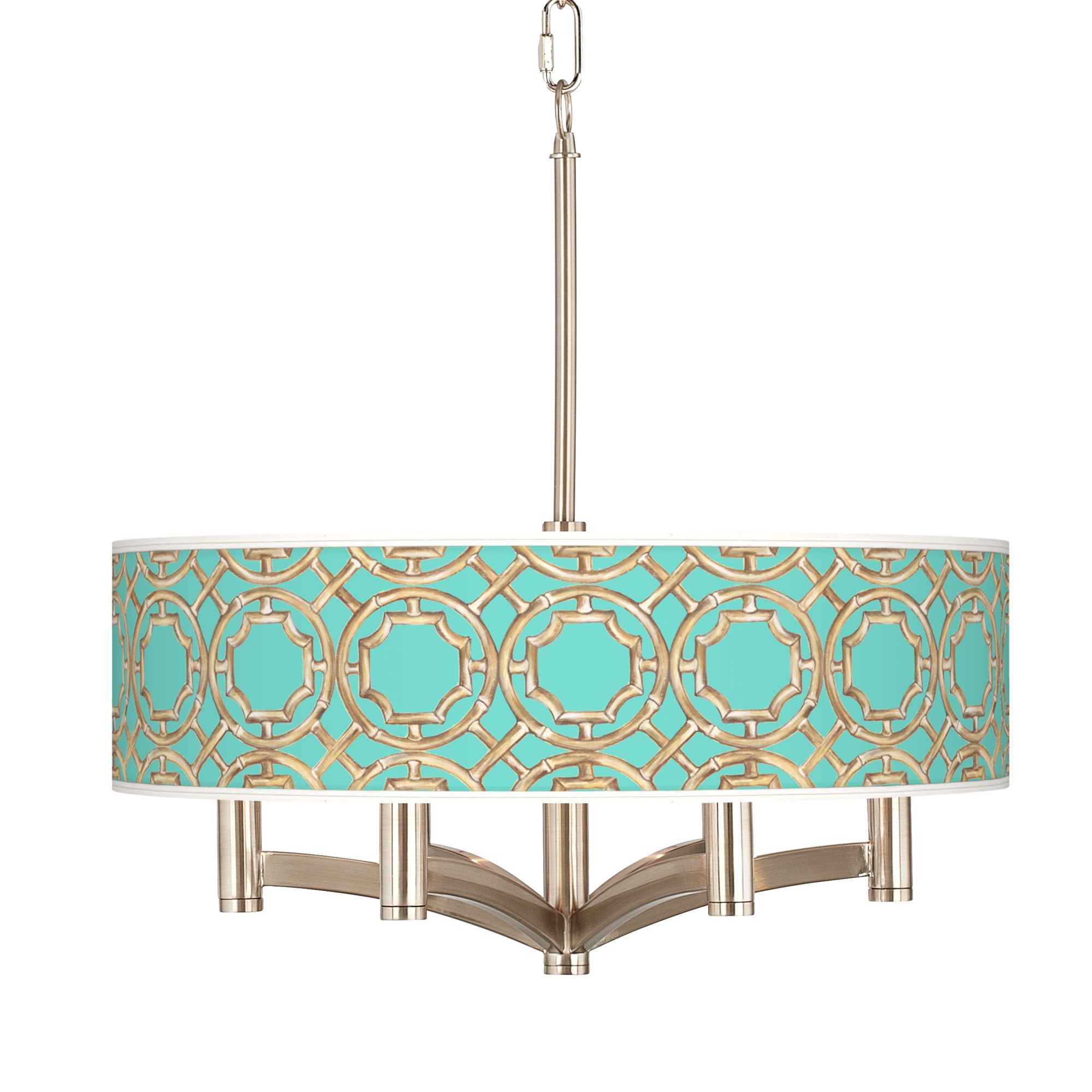 Teal Bamboo Trellis Ava 6 Light Nickel Pendant Chandelier Ebay