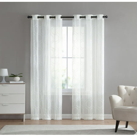 Vcny Home Geometric Embroidered Sheer Empire Grommet Top Window