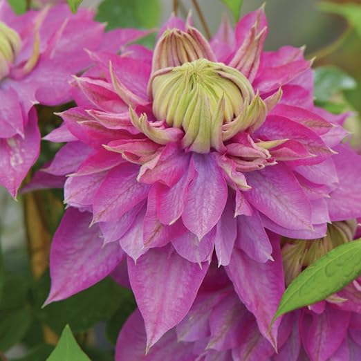 Clematis Climbing Garden Plant With Pink Double Flowers In Summer