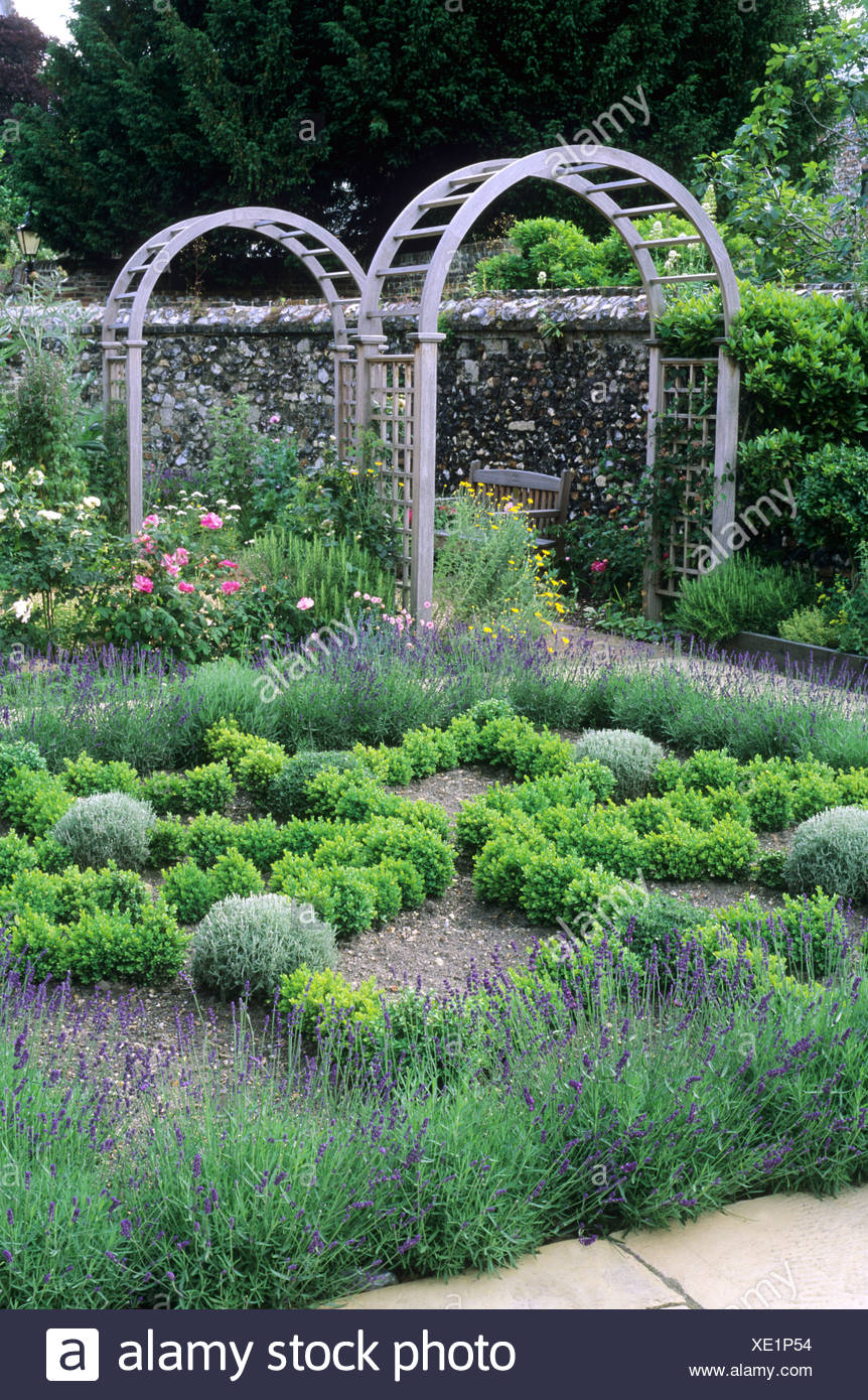 Herb Knot Garden Lavender Box Hedges Trellis Arches Stock Photo