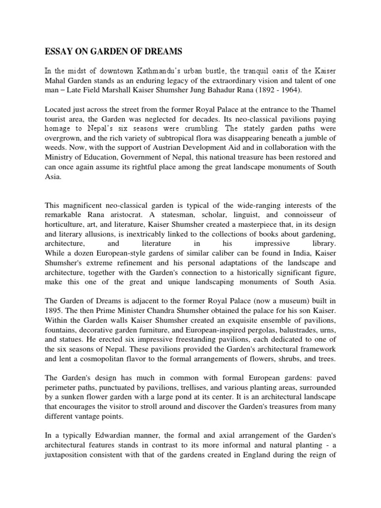 Garden Of Dreams Environmental Design Horticulture And Gardening