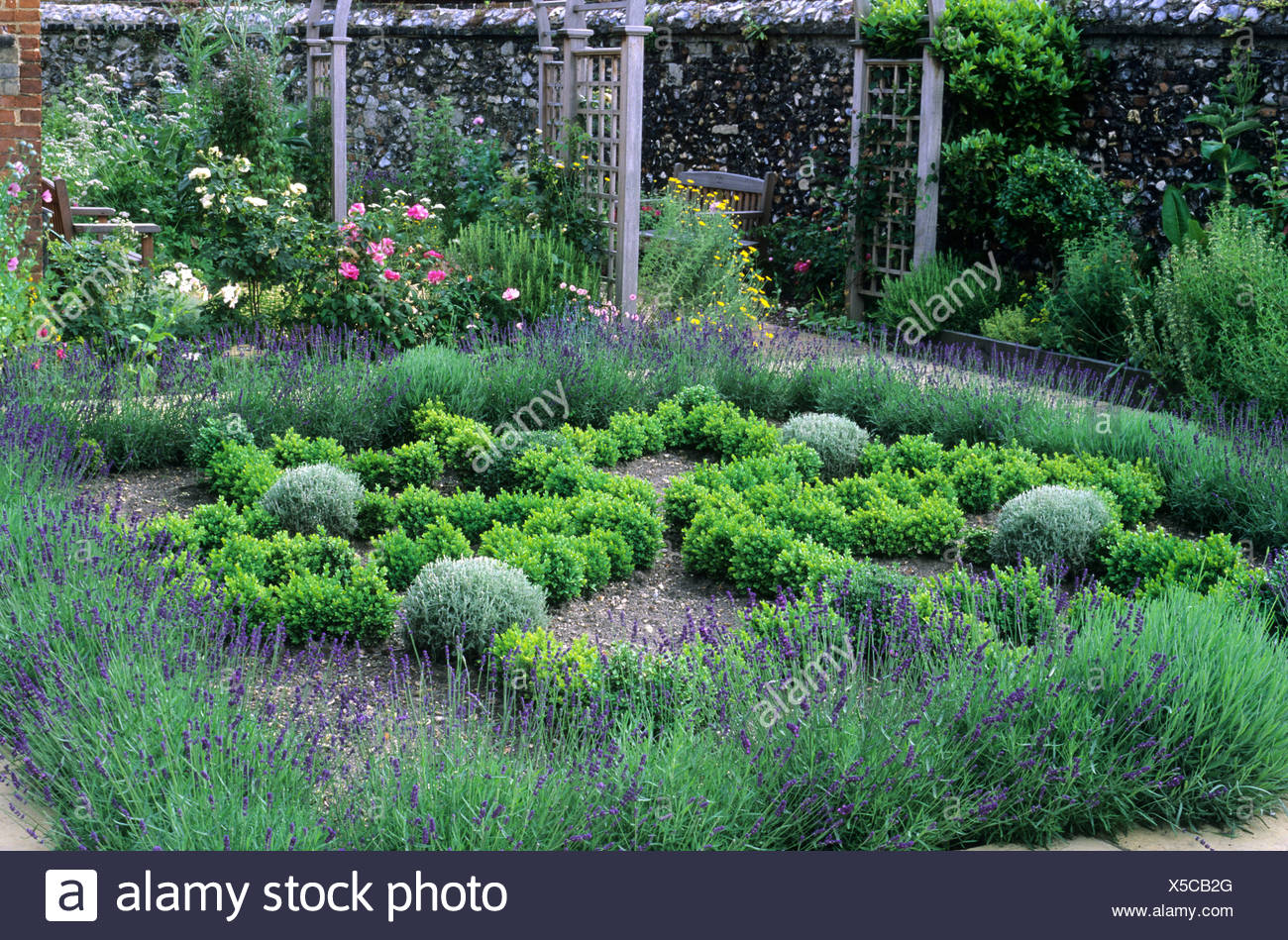 Herb Knot Garden Lavender Box Hedges Trellis Arches Stock Photo
