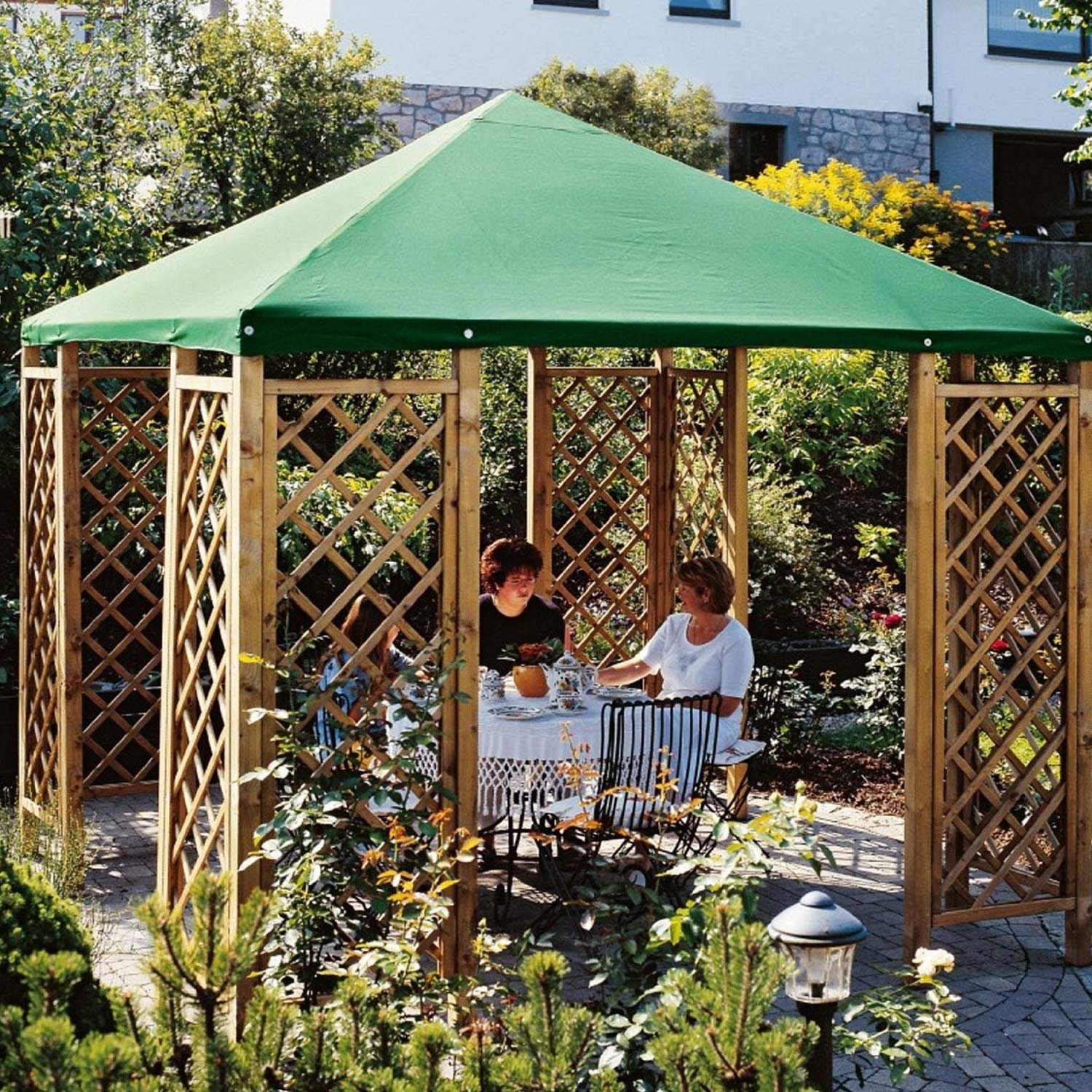 This elegant scroll designed gazebo fashioned with a hunter green finish is perfect for decorating your garden or backyard entrance. W x 91 in. A gazebo is a lot like having an outdoor room.