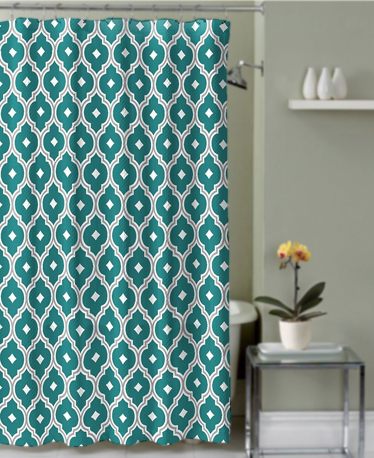 Howplumb Shower Curtain Teal And Gray Quatrefoil Trellis Textured