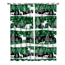 Christmas Themed Winter Animals On Buffalo Green Trellis Window