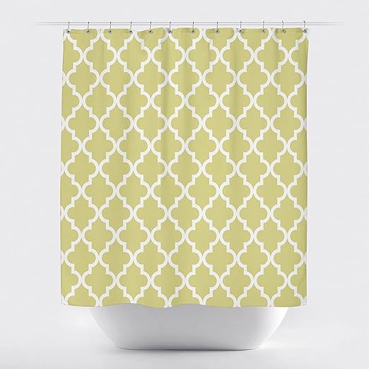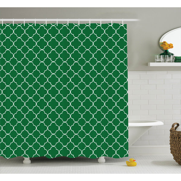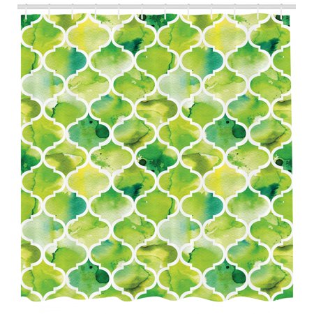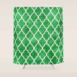 Watercolor Shower Curtain Moroccan Trellis Pattern In Green Tones