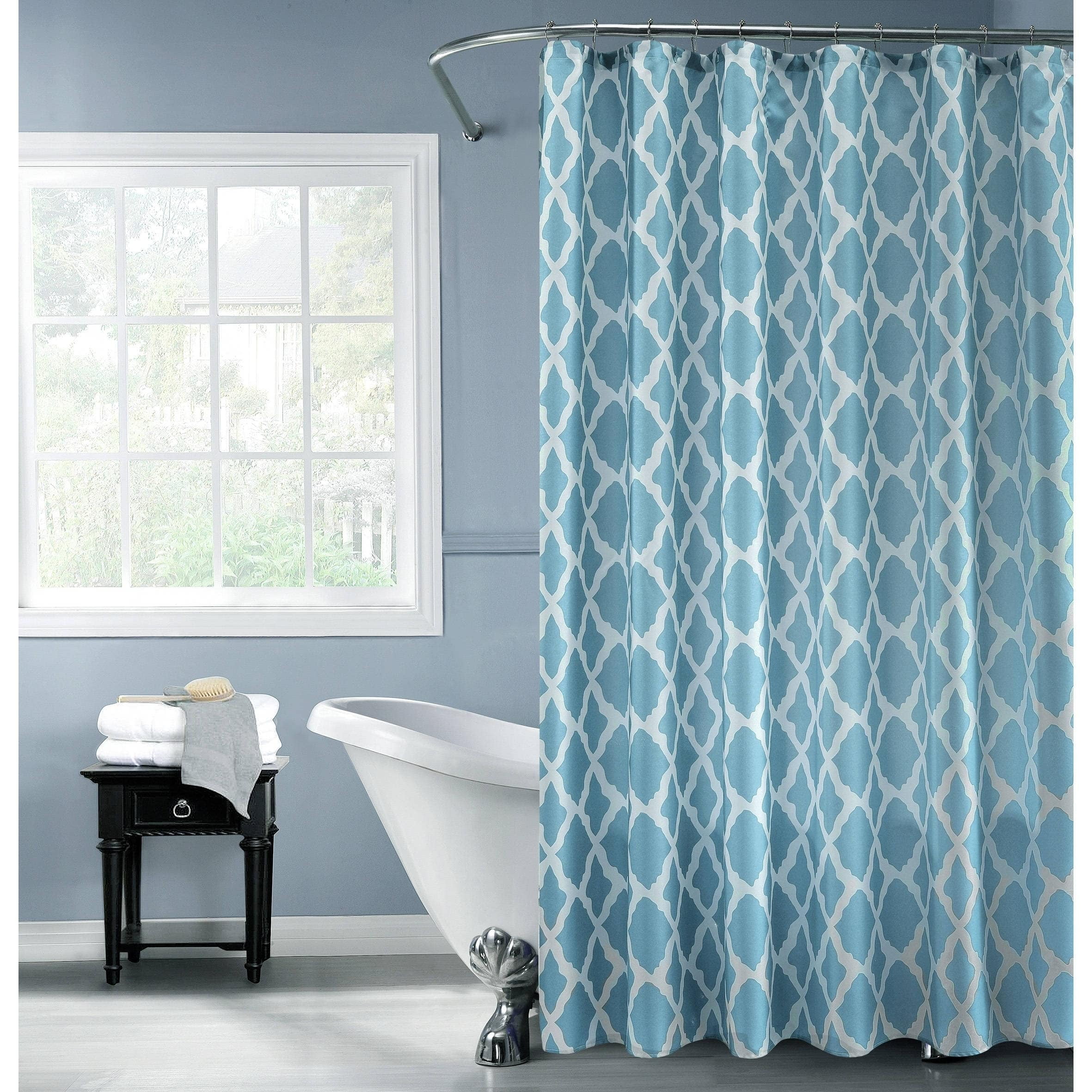 Howplumb Shower Curtain Teal And Gray Quatrefoil Trellis Textured