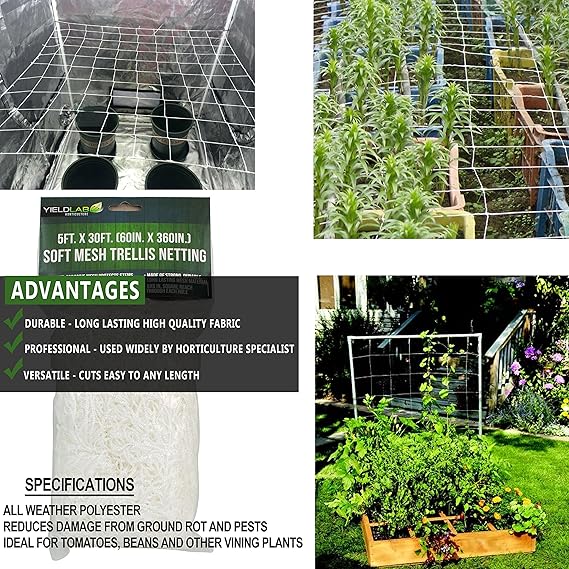 Yield Lab Soft Mesh Trellis Netting For Hydroponic Grows Scrog