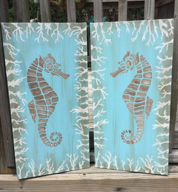 Seahorse Kissing 2 Panel Canvas Wall Art Beach House Coastal Etsy