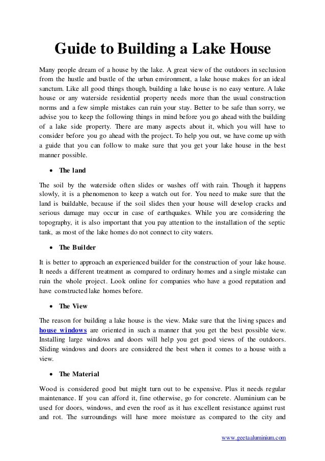 Guide To Building A Lake House