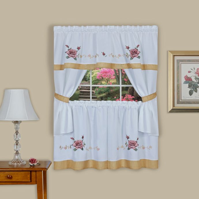 Achim Rose Cottage Kitchen Window Curtain Tier Pair And Swag
