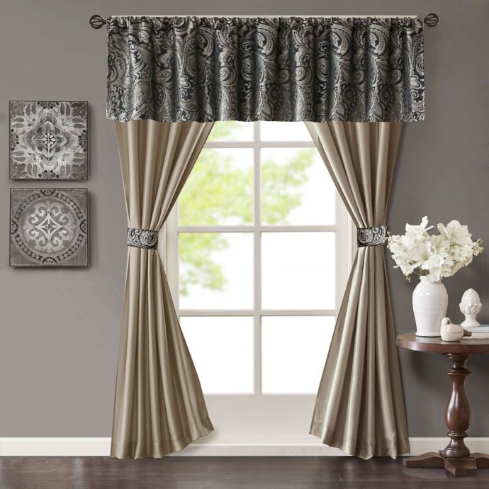 Madison Park Aubrey Rod Pocket 5 Piece Faux Silk Window Curtain
