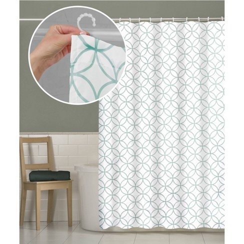 Smart Shower Curtains Trellis Fabric With Attached Hooks Blue