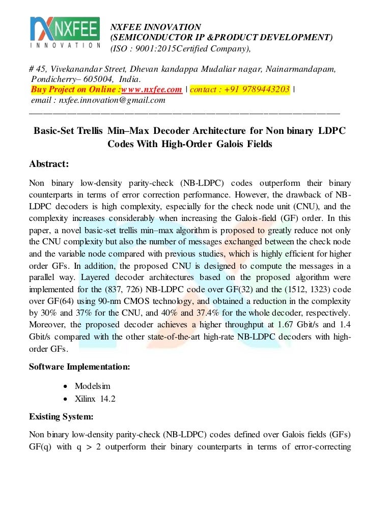 Basic Set Trellis Min Max Decoder Architecture For Non Binary Ldpc Co