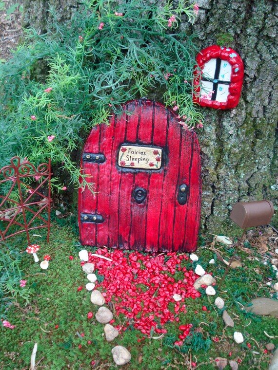 Large Red Fairy Garden Door Set With Trellis And Post Box And Etsy