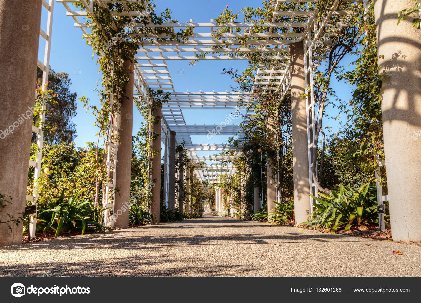 Rose Garden Trellis Path With Rose Vines Stock Photo