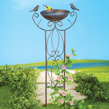 Antique Copper Colored Birdbath Trellis With Scrollwork Design