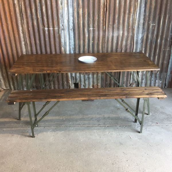 Vintage Military Pine Trestle Table And Folding Benches Vinterior